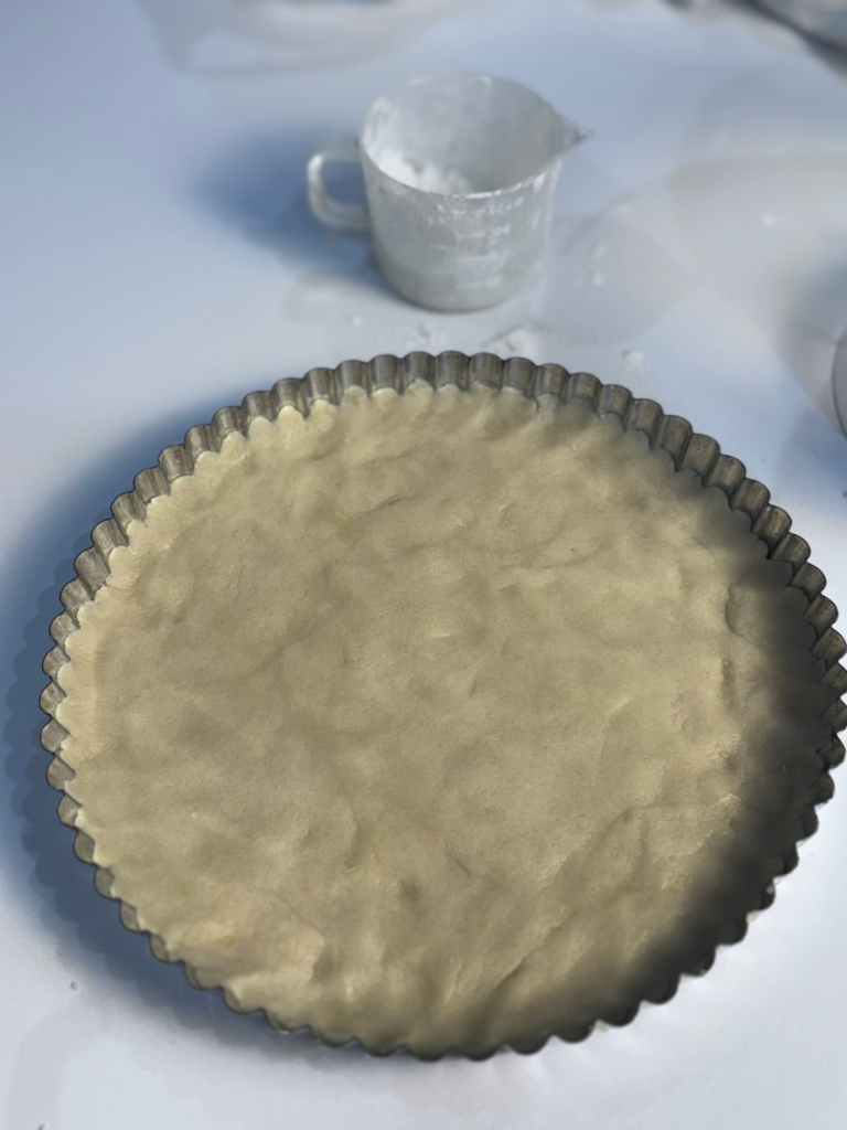 3. Turn dough onto floured surface, knead 2–3 times, then press evenly into tart pan. Refrigerate 30 min.