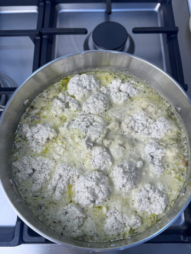 Cover the pot with a lid and simmer on low heat for 15 minutes. Do not open the lid during this time. After 15 minutes, check one dumpling—cut it open to make sure it’s fully cooked.