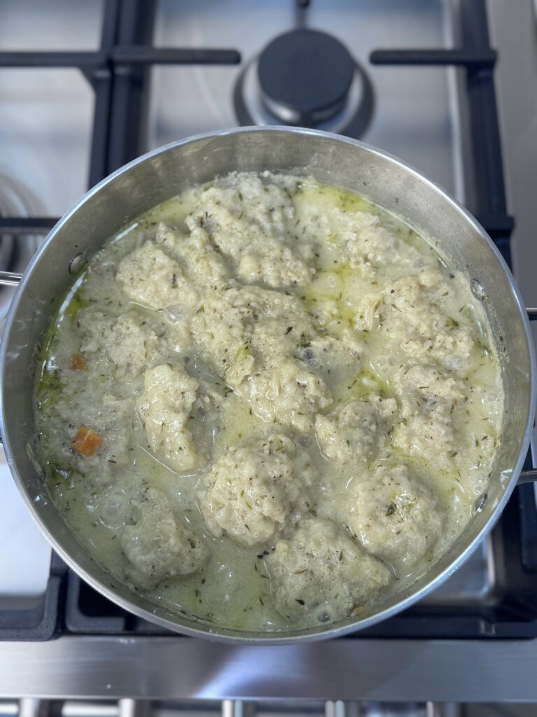 Don’t Peek! Keep the lid on while the dumplings steam so they cook evenly and stay fluffy.