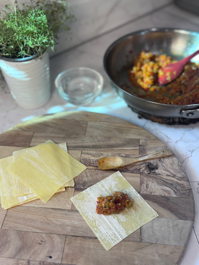 • Veggie Filling (carrot, pepper, snow peas, mushrooms) – Crunch, color, nutrients—no limp veggies allowed.