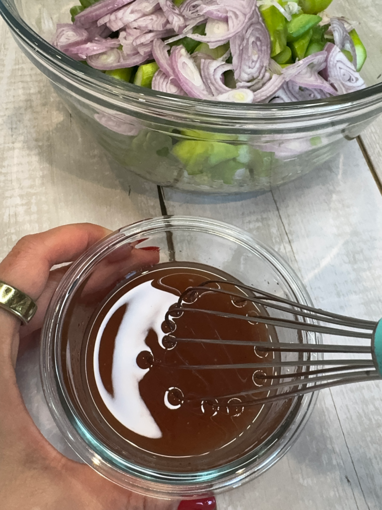 This salad brings all those summer vibes together in under 30 minutes. The honey-vinegar dressing is super simple but packs so much flavor, and the whole dish is easy to customize with what you have on hand. If I had shrimp in the fridge, I’d have tossed it in too—this salad is that versatile.