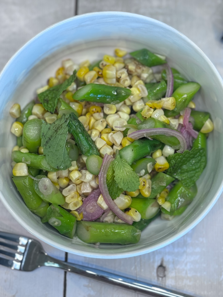 Summer’s here, and nothing screams warm weather like sweet corn and vibrant asparagus tossed together in a bright, tangy salad.