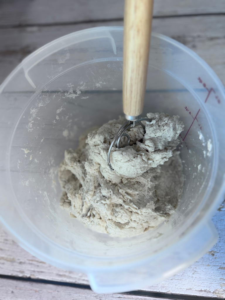 • A Danish dough whisk is stronger than a standard whisk and makes mixing this wet dough much easier.