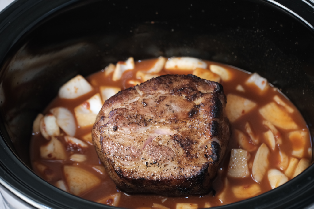 • Slow cooking keeps the pork tender and juicy