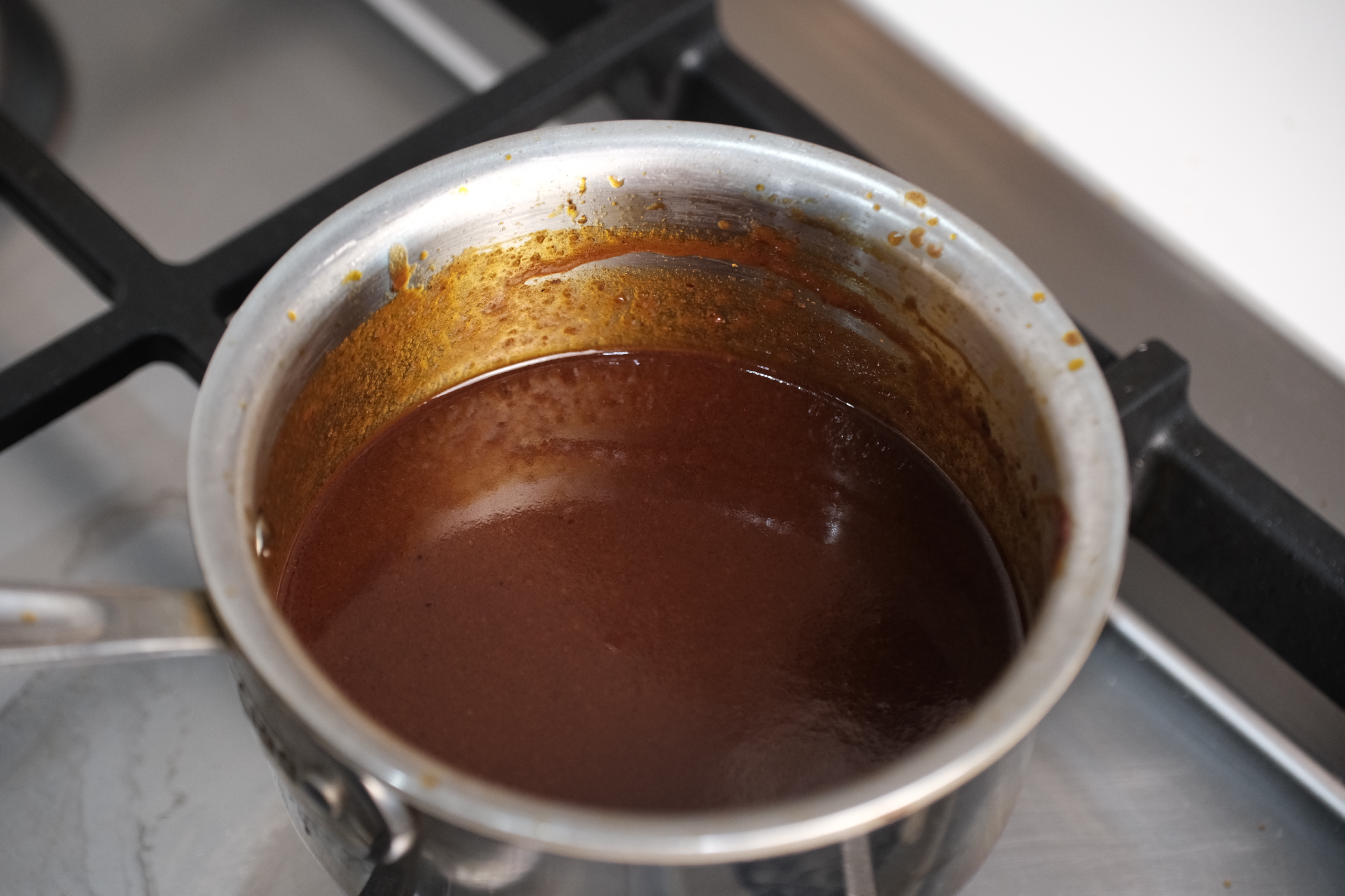 juices from slower cooker, 2 tsp gochujang, 2 tsp brown sugar, gochugaru, splash of vinegar, 1 tbs butter -
