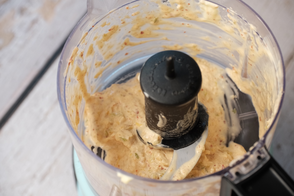 1/2 cup Kewpie mayonnaise, 1/2 cup kimchi, 1/2 tsp gochujang