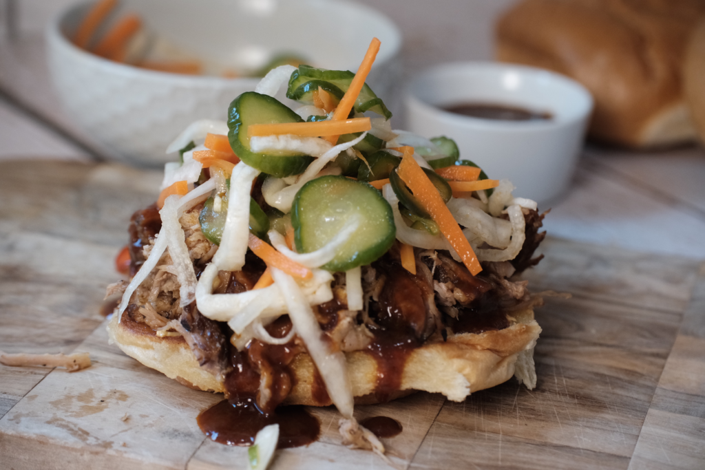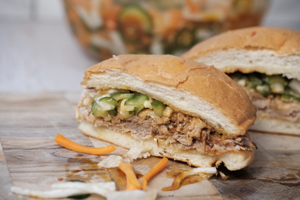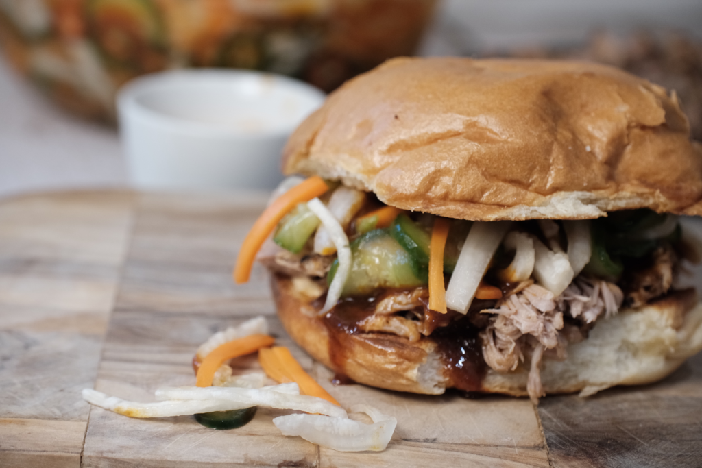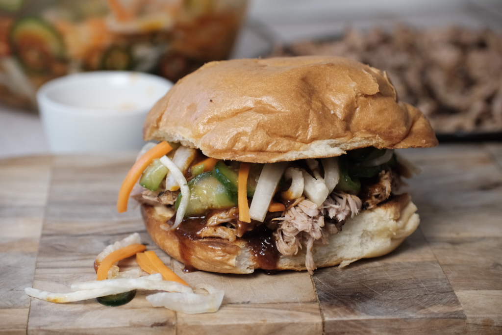 Gochujang Pulled Pork Sandwiches with Pickled Veggies