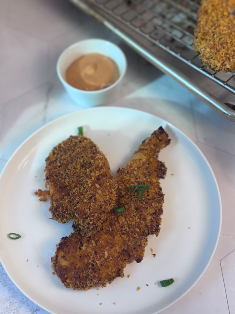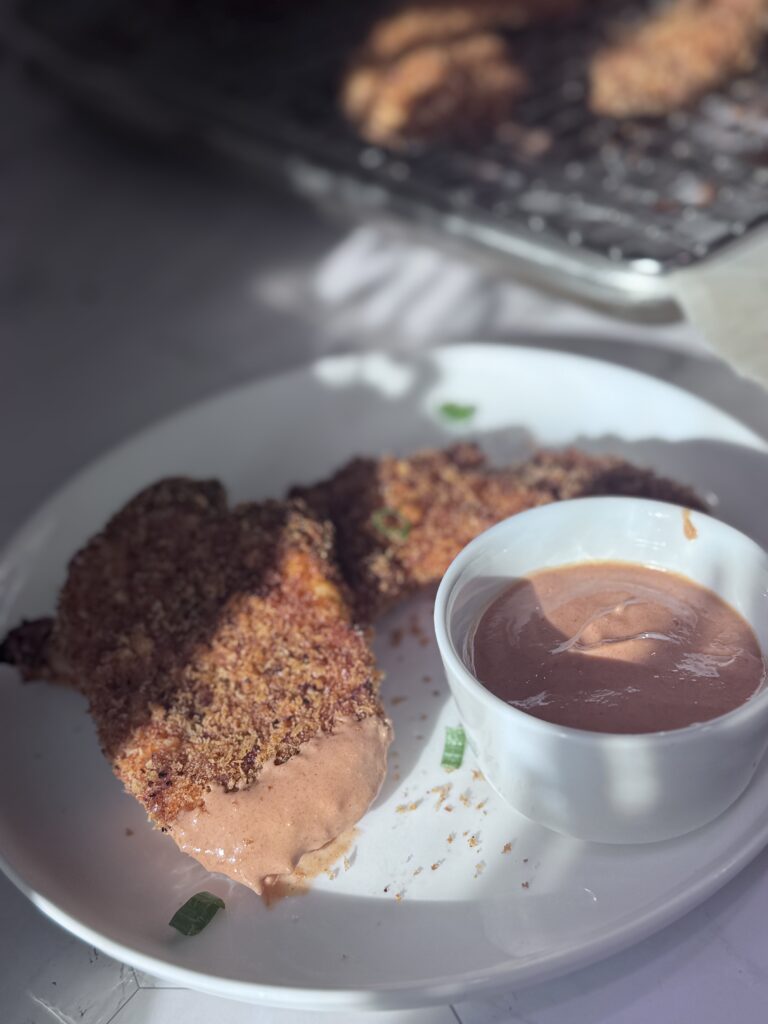 Whether you’re a fried chicken purist or just trying to sneak something healthier onto the table, these Korean-spiced chicken tenders bring the crunch, the heat, and the flavor. And that gochujang yogurt sauce? It might become your new fridge staple. Tag me if you make them—@the.sustainable.kitchen. I’ll be over here dunking and crunching like it’s my job.