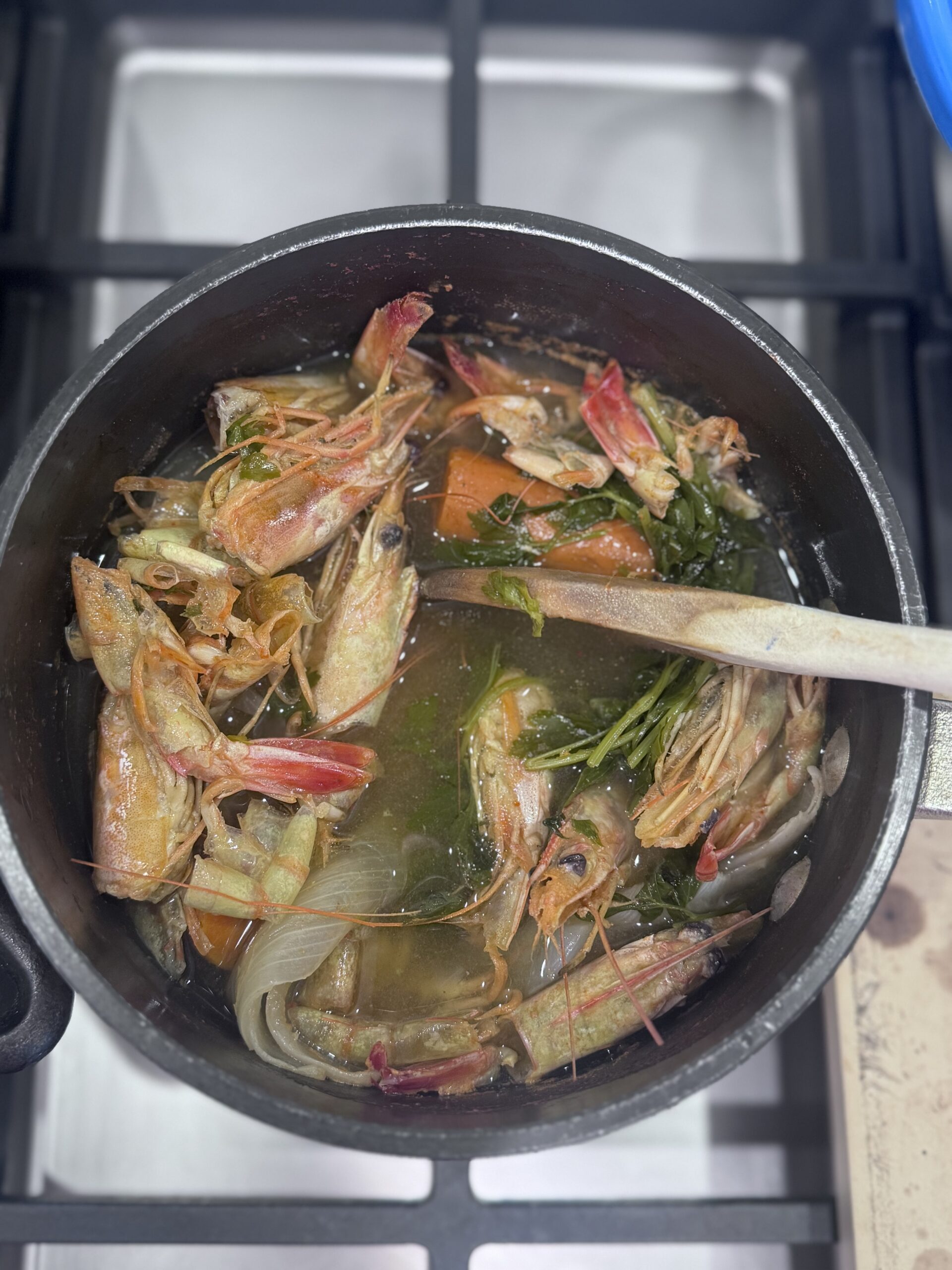Shrimp fumet (2 cups)A concentrated shrimp stock that deepens flavor. It’s extra—but it’s worth it.