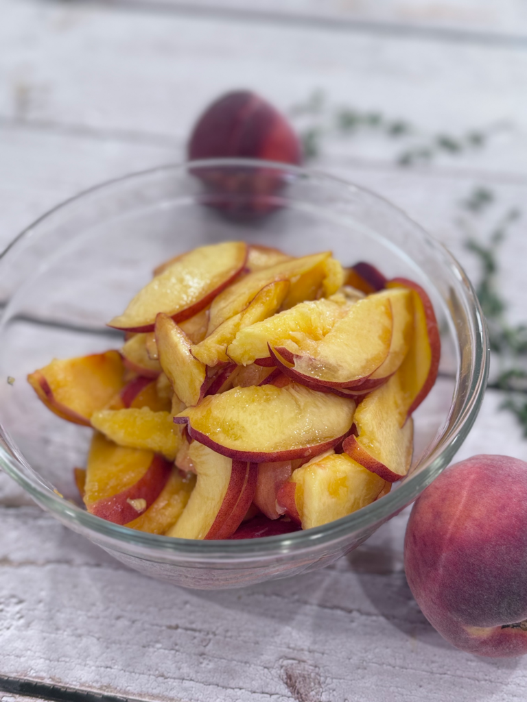 • Use ripe but firm peaches – You want juicy flavor without total mush when they hit the heat. Overripe = peach soup. Not cute.