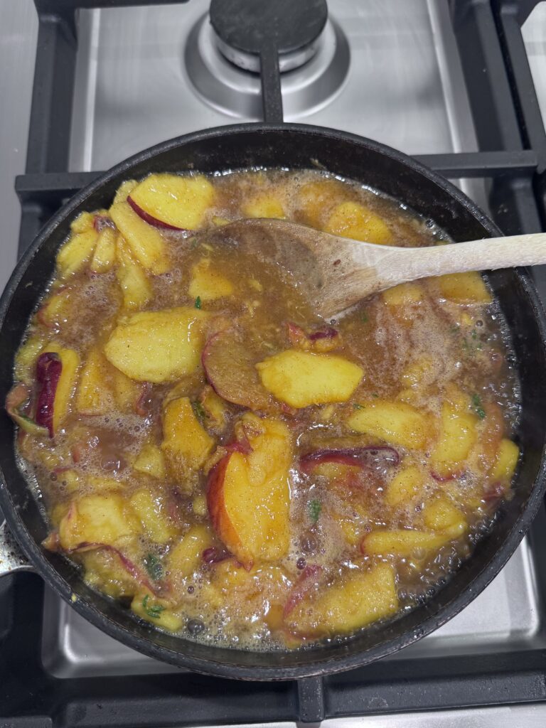 • Maple-vanilla maceration + caramelized butter = concentrated peach glory