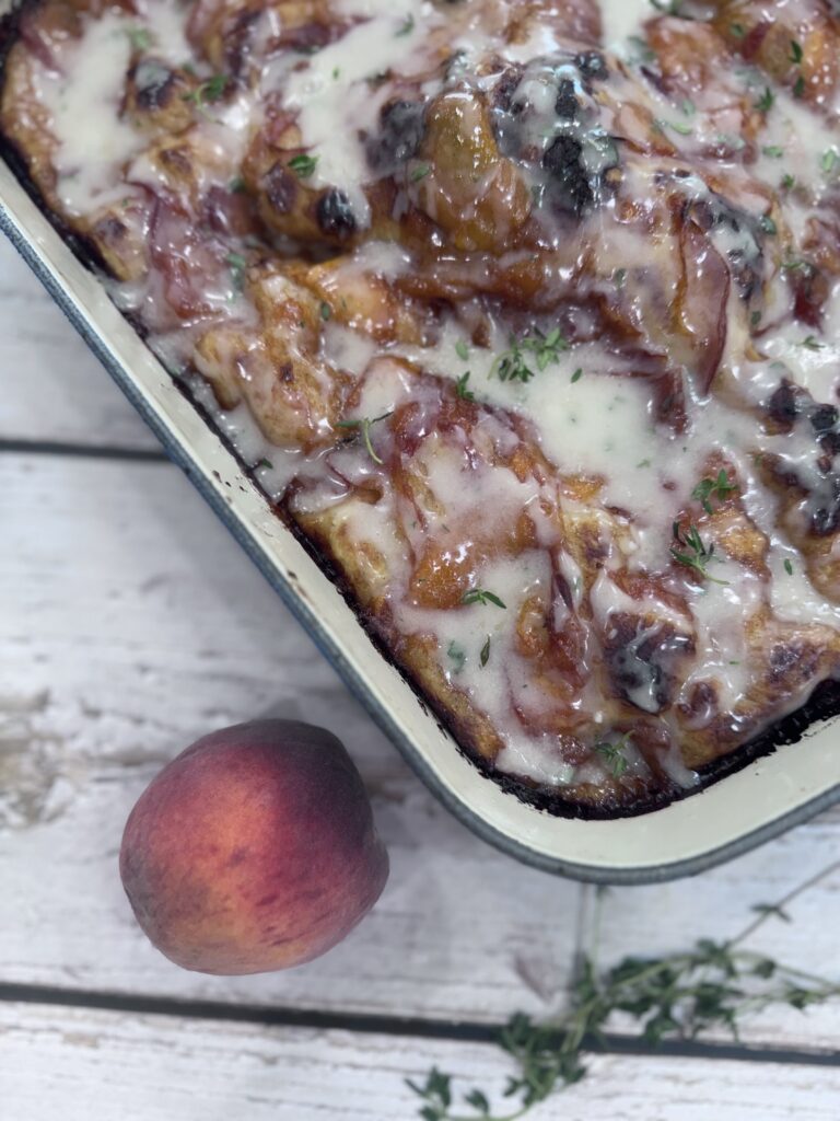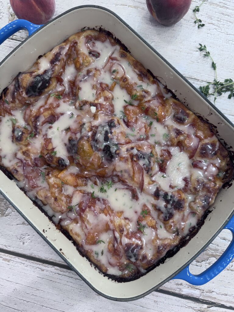 • Save that syrup – That peach-maple syrup leftover in the pan? It’s liquid gold. Use it in the glaze or drizzle it straight over the top.