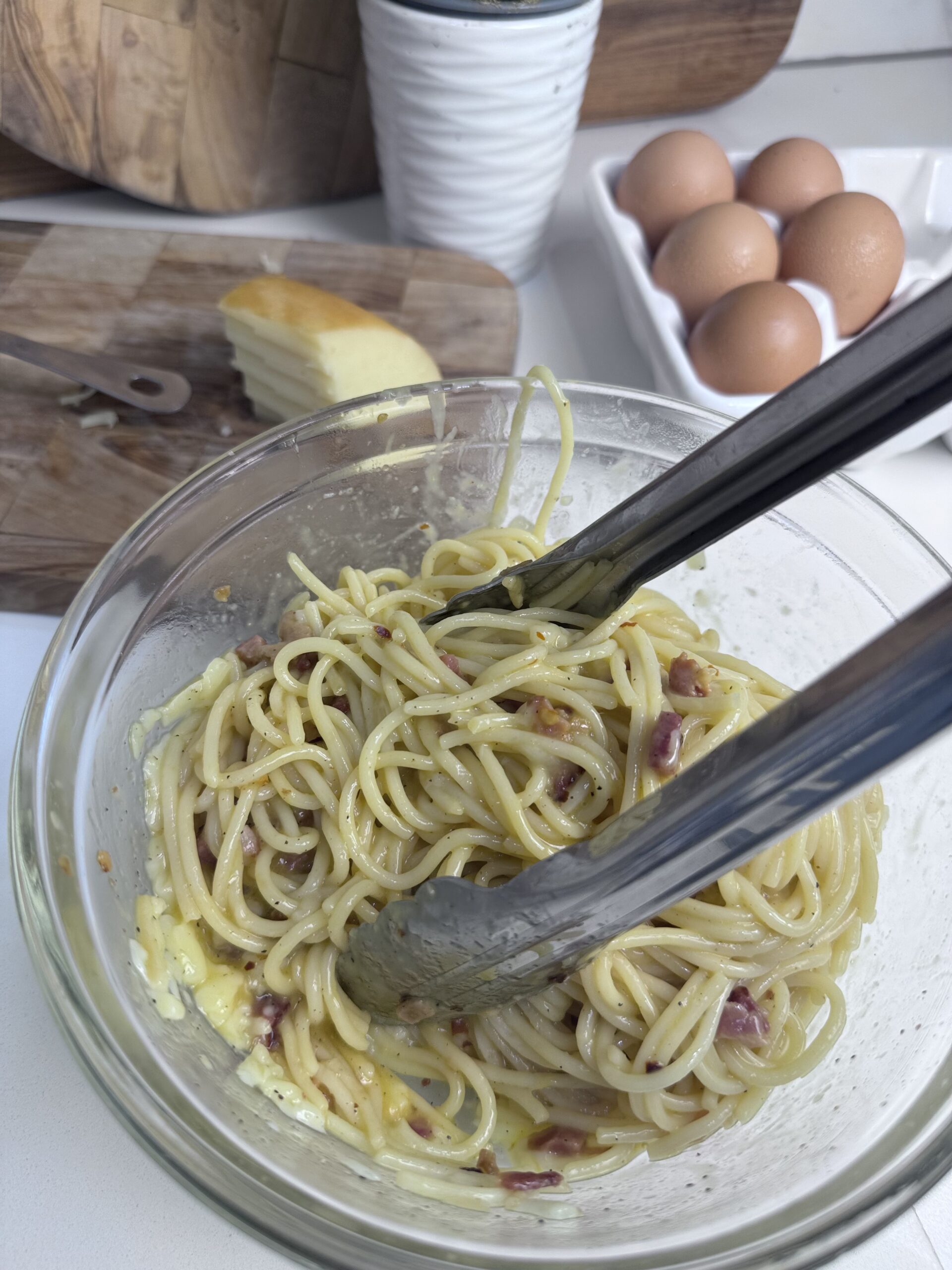 • 5 large egg yolks + 1 large egg – Gives that glossy, creamy sauce without adding dairy-based cream.