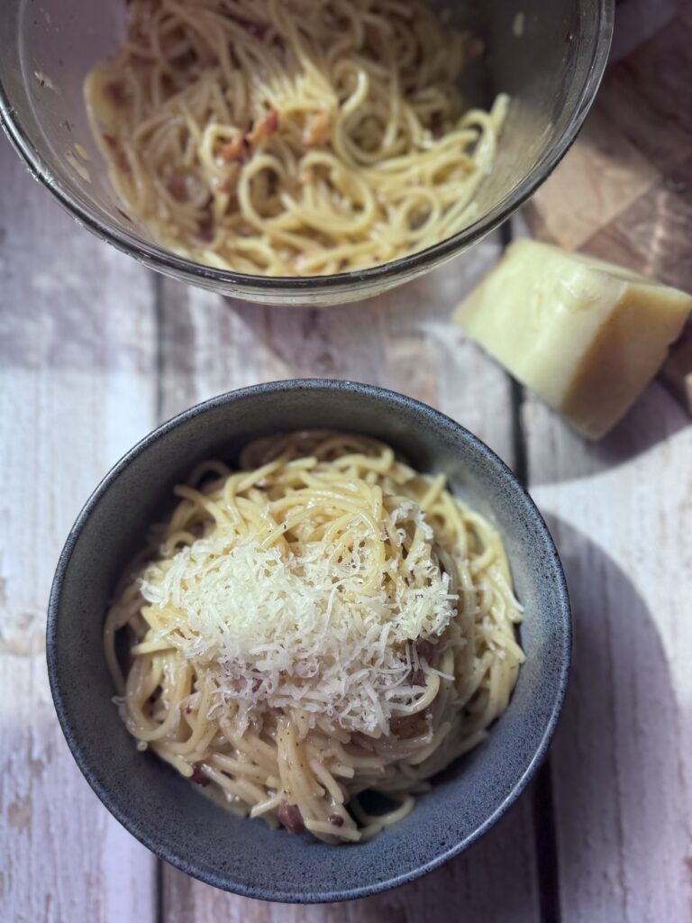 When you think carbonara, you probably picture Parmesan or Pecorino. But today, my friends, we’re breaking the rules—and it’s glorious.