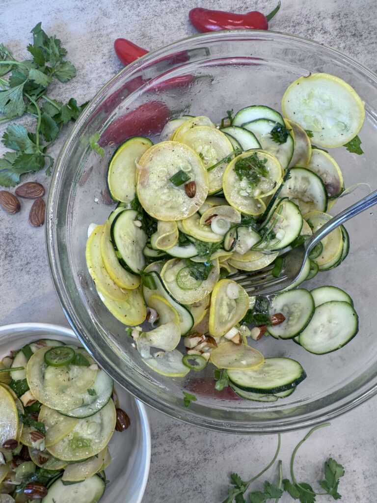 You might be thinking: raw squash? really? But trust me—thinly sliced zucchini and yellow squash transform into something totally different: crunchy, light, and almost sweet, like summer in every bite.
