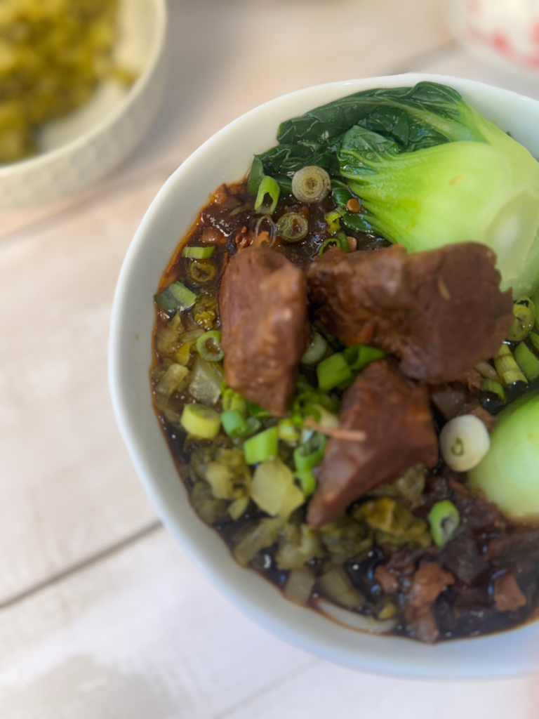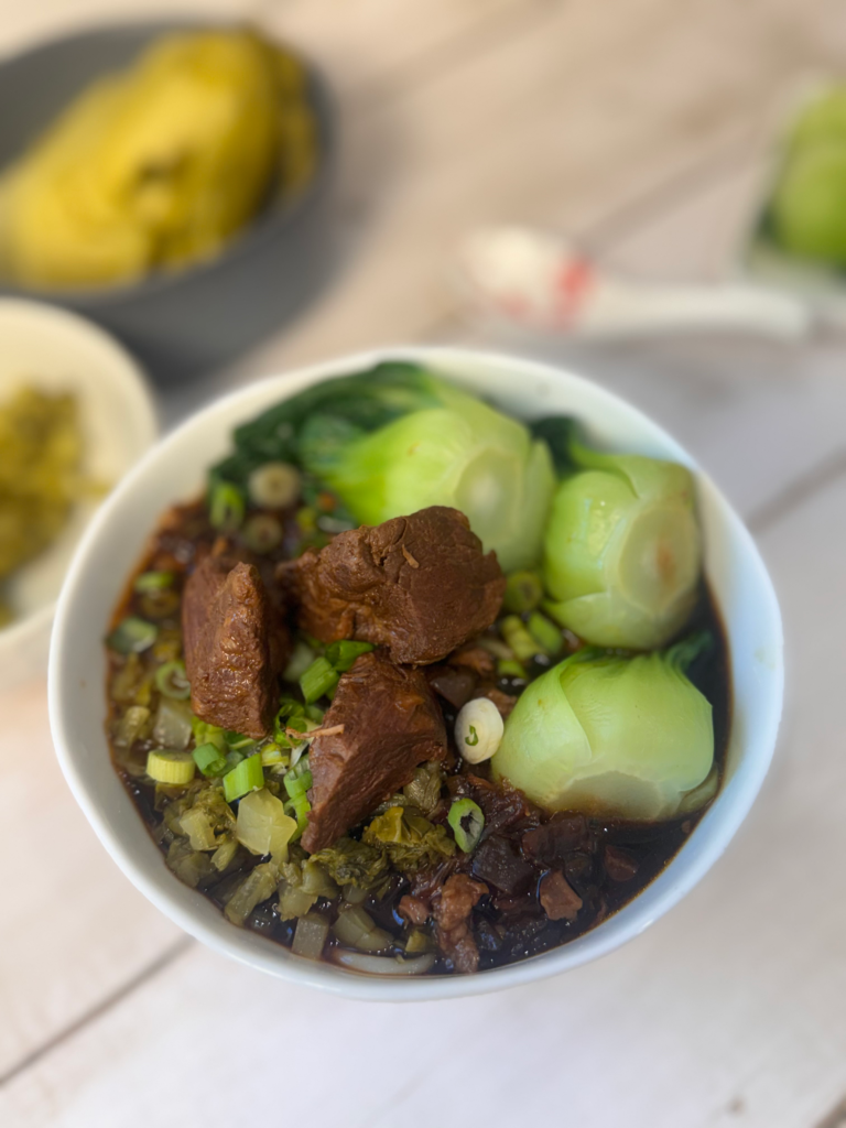 • Pickled mustard greens (xue cai) – Classic topping for tang and bite.