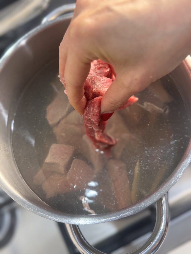 Bring a large pot of water to a boil. Add beef shank and chuck. Boil 5–8 min to release impurities. Drain and rinse beef under cold water.