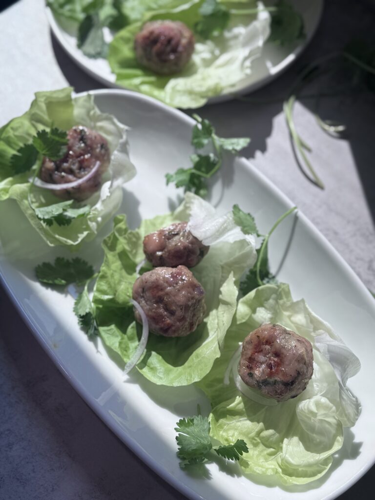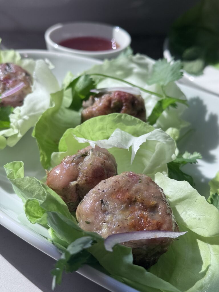 Meatballs in lettuce might sound dainty, but these punch above their weight. Sweet, savory, herby, and just spicy enough, they bring the whole Vietnamese street food vibe to your kitchen. Give them a whirl, and don’t forget to tag me on Instagram @the.sustainable.kitchen if you make them. I’d love to see your meatball moment!