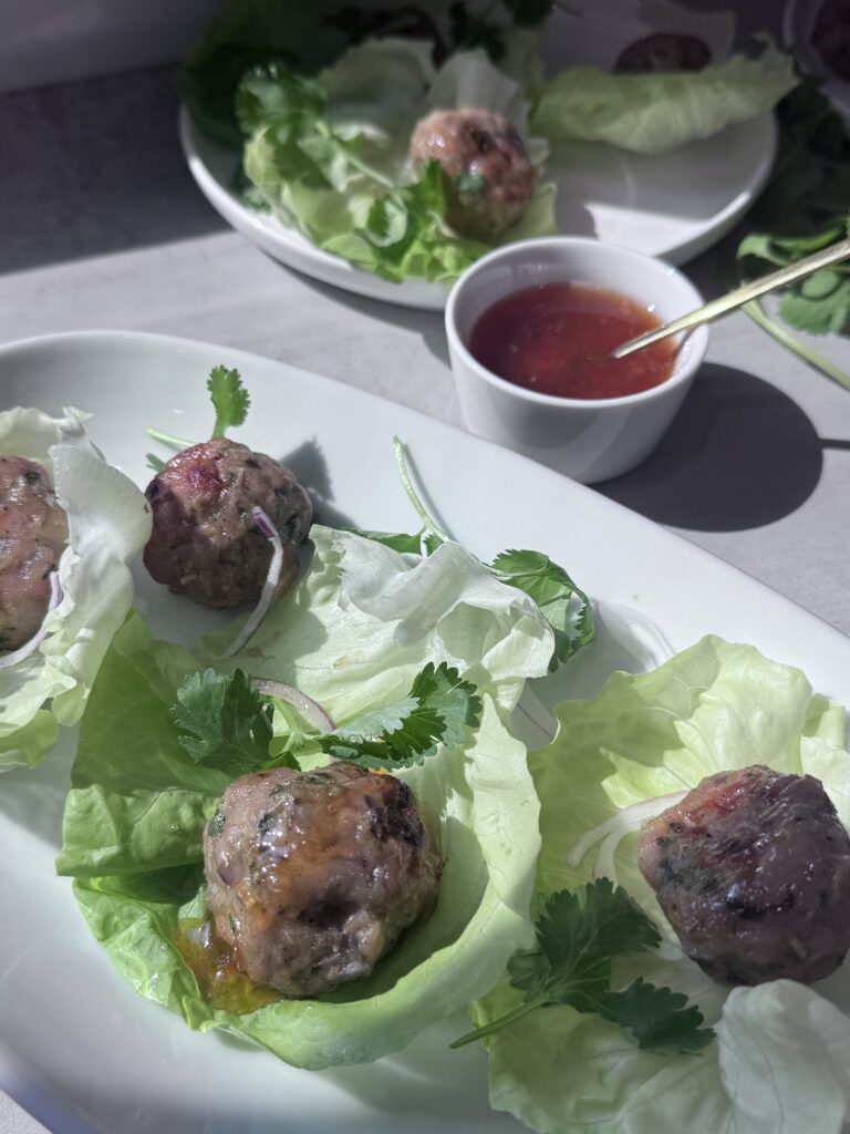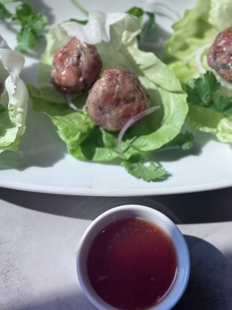 I used to help roll the meatballs while she prepped the lettuce, and yes, I absolutely thought I was a culinary prodigy because I was allowed to touch raw chicken. We’d dip them in nuoc cham or whatever sauce she had on hand, wrap them in lettuce, and devour them faster than you can say “Can I have another?”