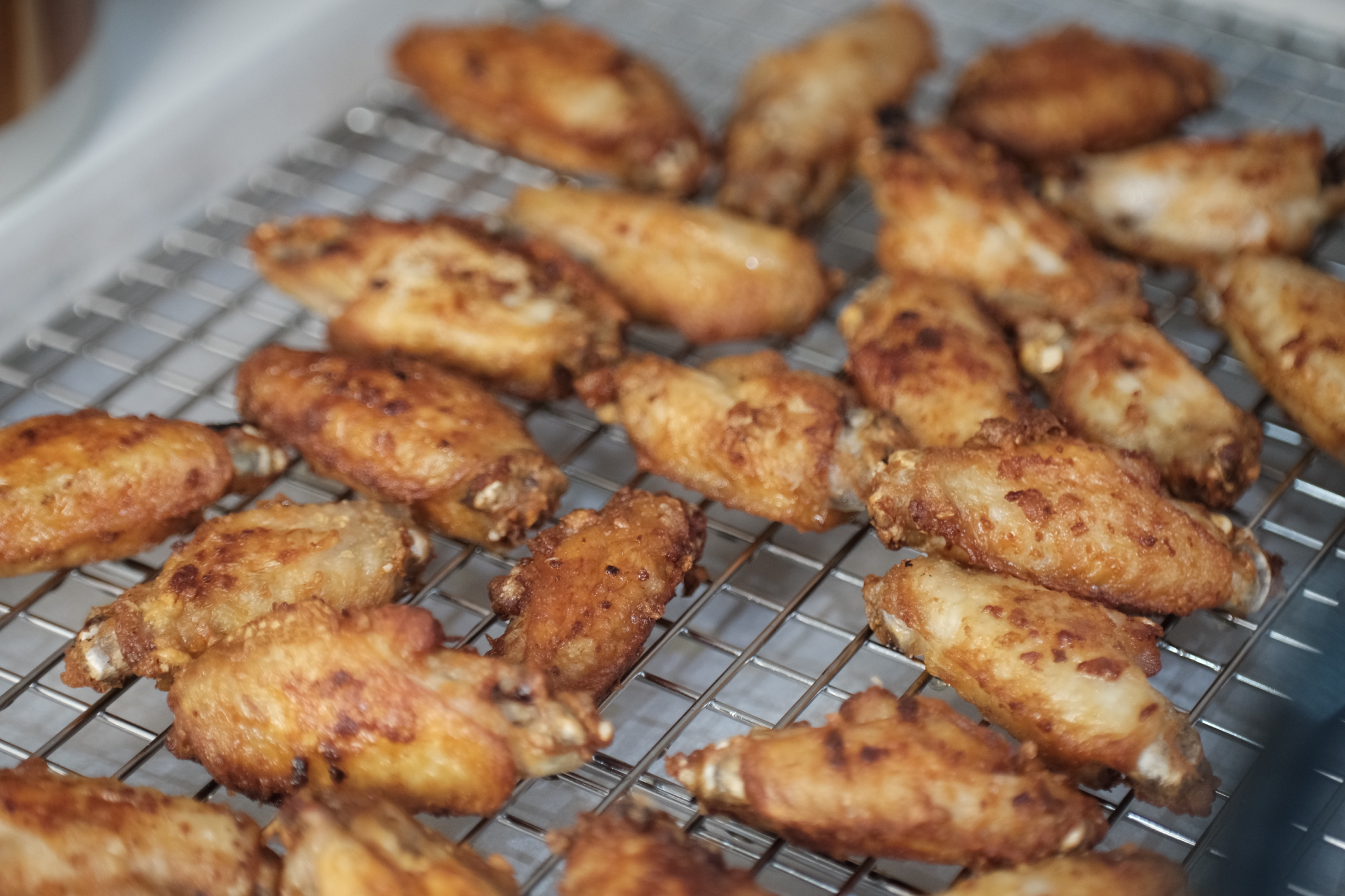 • Dry your wings well before tossing with coating—crispy wings need dry skin.