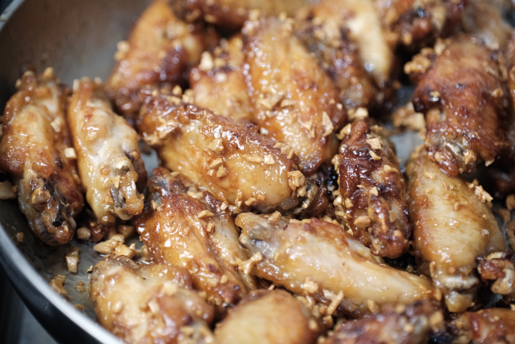 • Chicken Wing Flats – More skin = more surface area for glaze and garlic.