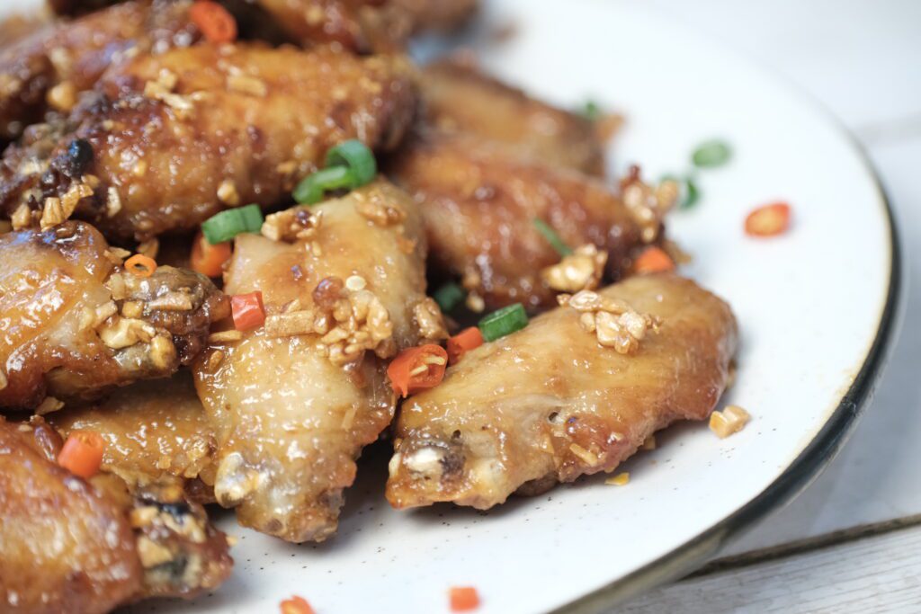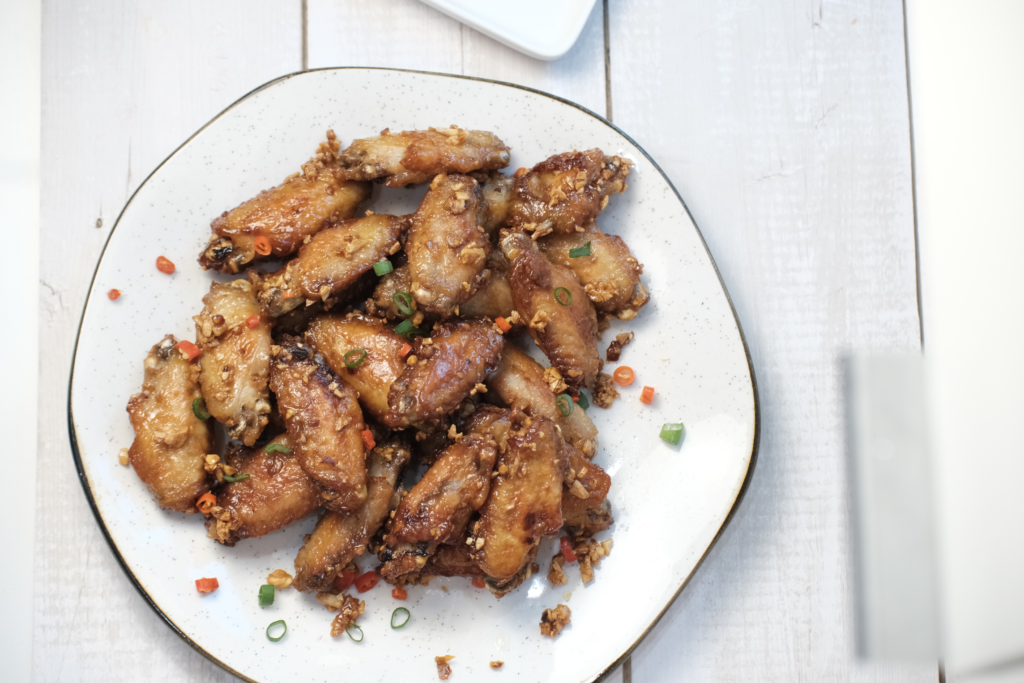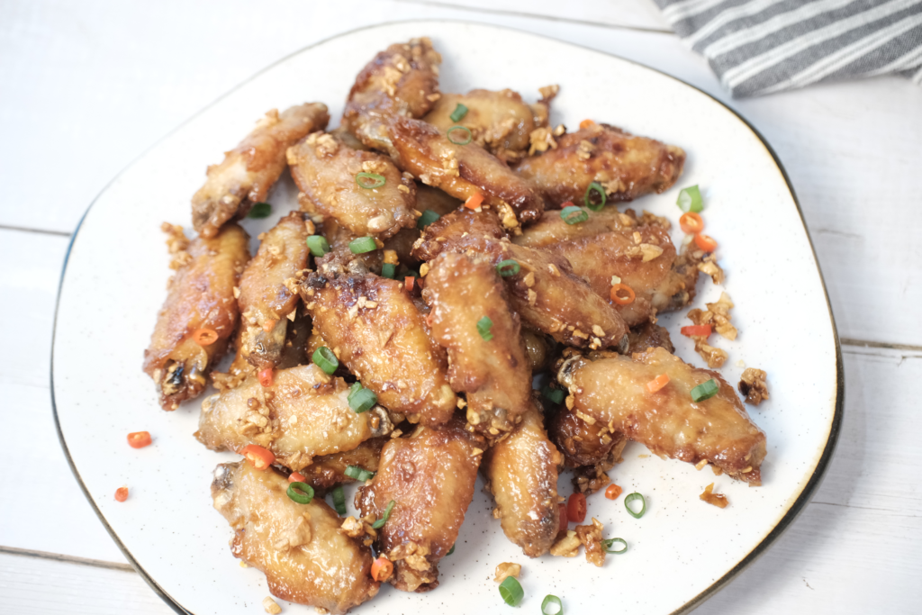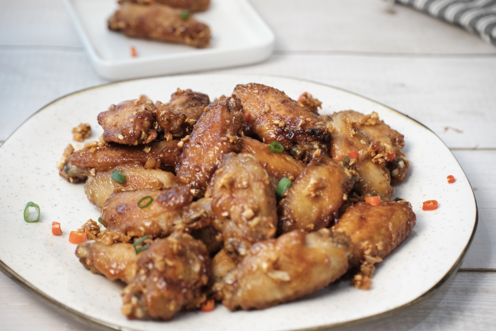 • Use medium heat for frying to avoid burning the garlic or overcooking the wings.