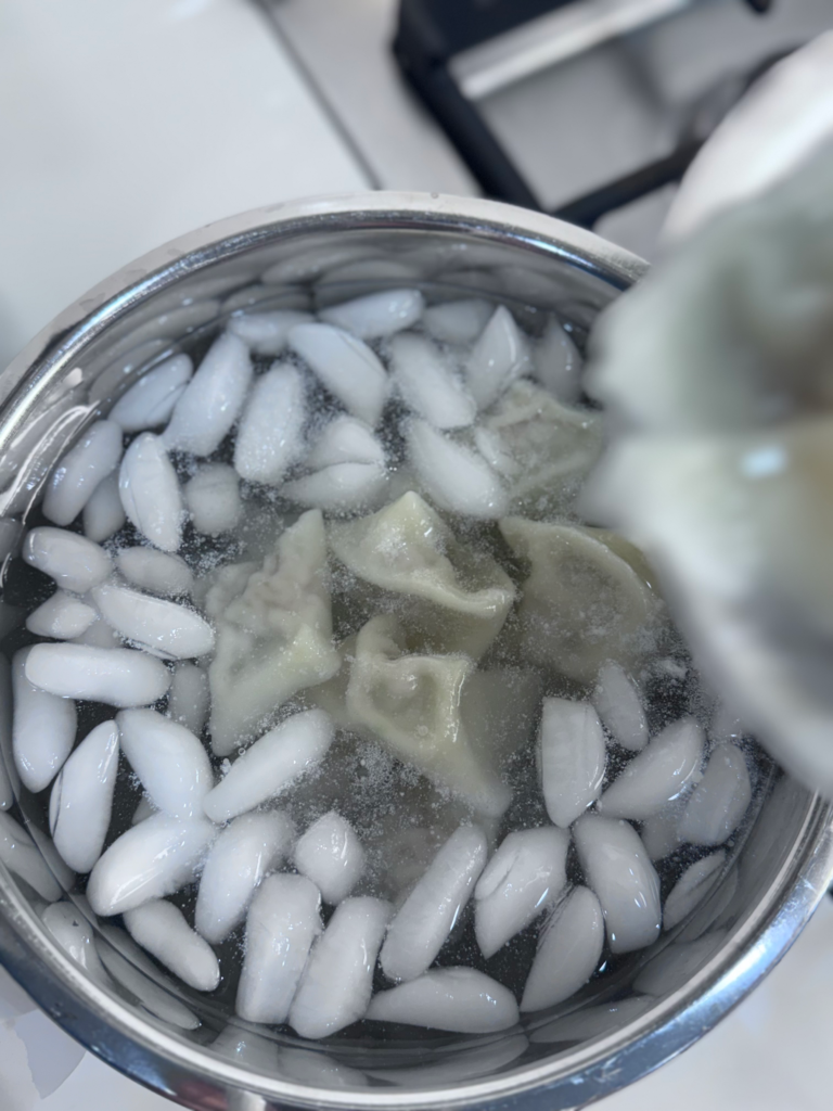 Bring a fresh pot of water to boil. Drop in the wontons and cook for 2 minutes. Shock them in ice water and drain.